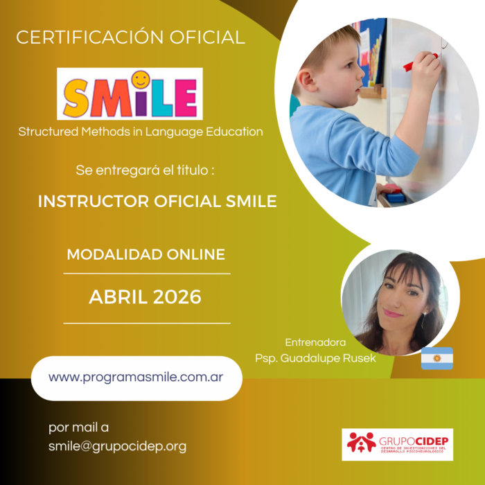 Organizadores: GrupoCIDEP (Argentina) El programa SMILE (Structured Methods in Language Education) está destinado a profesionales que trabajan con niños con trastornos del lenguaje asociado a algún tipo de trastorno del neurodesarrollo. La autora de SMILE es Enid G. Wolf Schein, quien ha entrenado